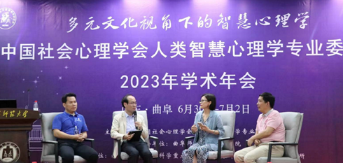 7月2日下午,本届学术年会的圆桌论坛召开。西南大学心理学部毕重增教授、D体育在线登录官网心理学院院长何文广教授、苏州大学教育学院彭彦琴教授、南京师范大学心理学院汪凤炎教授作为与会嘉宾就“当前智慧心理学发展中的机遇与挑战”进行了热烈讨论。彭彦琴指出,智慧包含着良知(道德),人心具有向善的能力,要重视“德”在智慧发展中的重要作用。毕重增提出,当代人类要跟上时代技术的步伐,在像ChatGPT这样的大数据的空间里面找到我们的智慧的模式。何文广就“老龄化社会与智慧之间的关系”这一话题展开谈话,提出智慧与年龄间的密切关系。汪凤炎指出智慧在人类发展中的重要作用,每当民族有危难时,总有很有智慧的人出现,力挽狂澜,带领我们走出水火,变危机为转机。