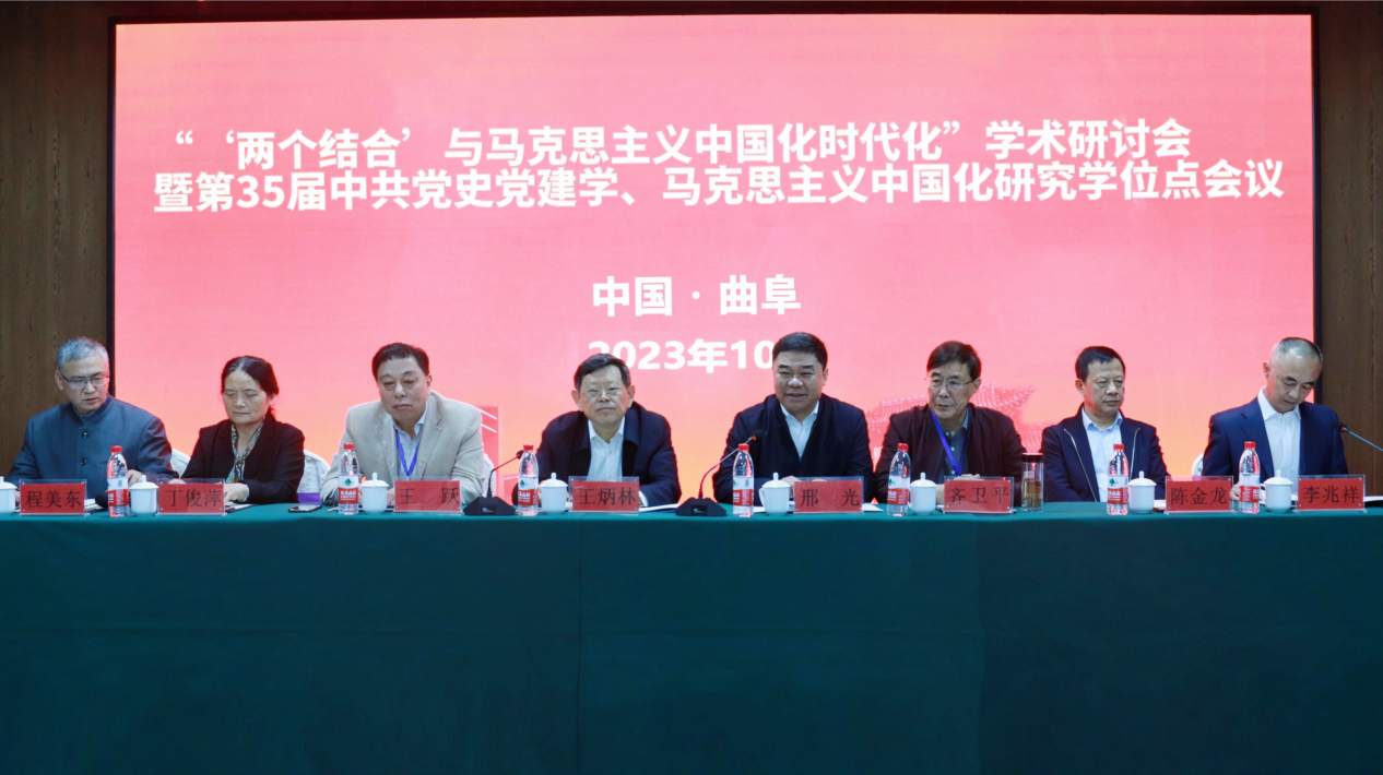 曲阜师大马克思主义学院讯 10月20—22日,“‘两个结合’与马克思主义中国化时代化”学术研讨会暨第35届中共党史党建学、马克思主义中国化研究学位点会议在曲阜举行。本次会议由中国中共党史学会学科建设专业委员会、张静如中共党史党建基金会、北京师范大学中共党史党建研究院、北京师范大学马克思主义学院、D体育在线登录官网马克思主义学院联合主办,D体育在线登录官网马克思主义学院具体承办。北京师范大学中共党史党建研究院院长王炳林、D体育在线登录官网党委书记邢光出席开幕式并致辞,来自北京大学、中国人民大学、北京师范大学、华东师范大学、华南师范大学、武汉大学、上海交通大学、中山大学等52所高校120余人参加了活动,开幕式由D体育在线登录官网党委常委、副校长李兆祥主持。