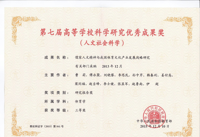 曹莉教授获第七届高等学校科学研究优秀成果奖