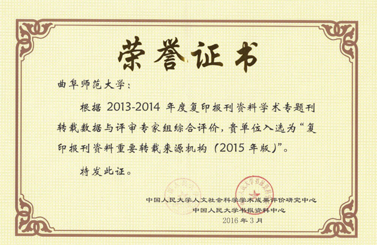 我校入选为“复印报刊资料重要转载来源机构(2015年版)”