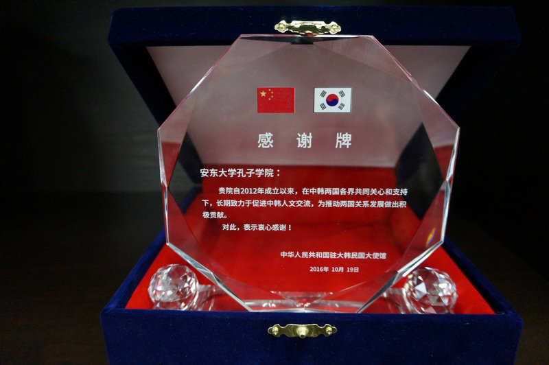 安东大学孔子学院荣获中国驻韩国大使馆表彰