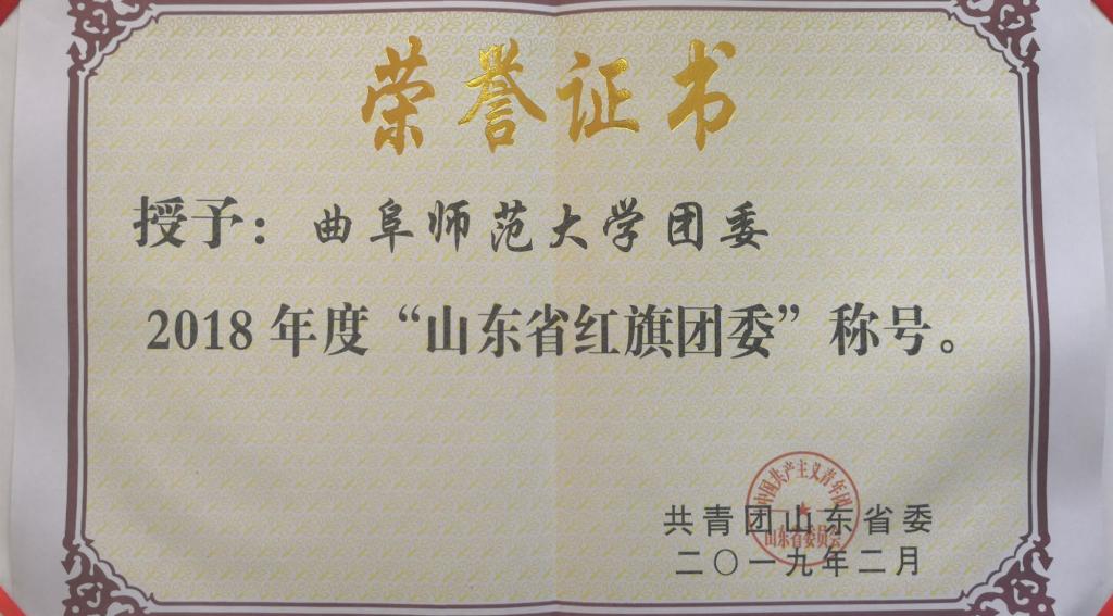 我校团委荣获2018年度山东省“红旗团委”称号