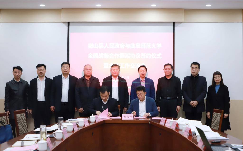 曲阜师大国内合作处讯 3月3日上午,曲阜师大与微山县政府签订全面战略合作框架协议,曲阜师大党委副书记、校长张洪海,党委常委、副校长纪洪涛,微山县县长郭鑫、副县长李丙宏出席签约仪式。张洪海介绍了...