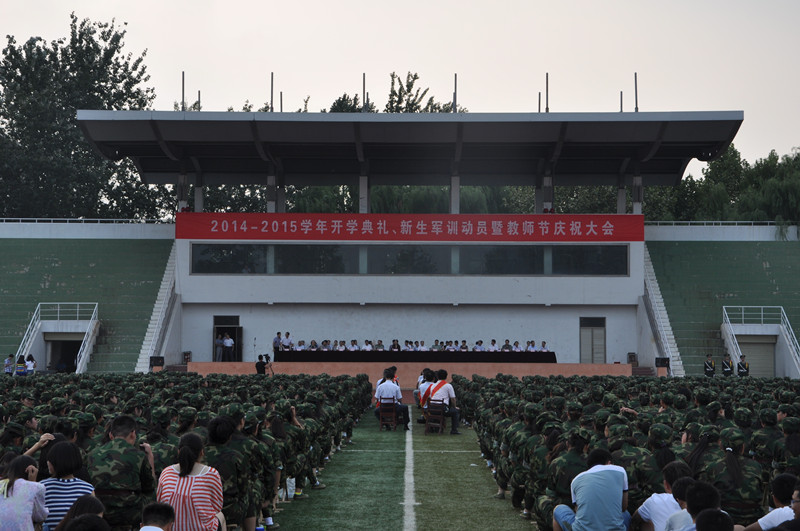 我校隆重举行2014—2015学年开学典礼、新生军训动员暨教师节庆祝大会